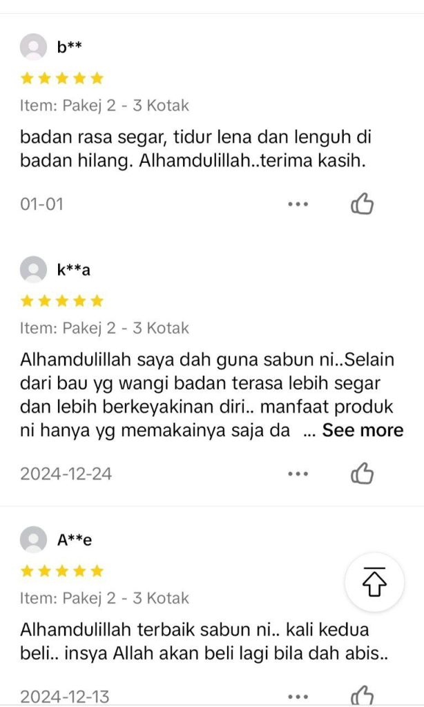 *PENAFIAN: Keberkesanan produk ini bergantung kepada kesesuaian individu. Setiap hasil dari penggunaan adalah berbeza bagi setiap individu. Produk ini akan memberi kesan terbaik sekiranya pengguna mengamalkan dengan cara betul berdasarkan banyak testimoni yang diperolehi. Kita berikhtiar, Tuhan yang menyembuhkan. Pengguna dinasihatkan menggunakan produk ini seperti arahan pada produk. Namun kami tidak bertanggungjawab jika sebarang masalah/komplikasi berlaku kepada pengguna di atas penggunaan produk ini